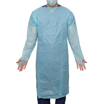 Haines® SmartBarrier® Thumbs-Up Gown offers full-body waterproof protection with an innovative thumb hook design to prevent sleeves from riding up during use. Made from durable CPE material, this single-use gown is individually sealed for maximum hygiene and convenience. Suitable for healthcare, laboratory, and other high-risk environments, the blue gown provides both comfort and security, ensuring that healthcare professionals stay protected while providing the necessary care.