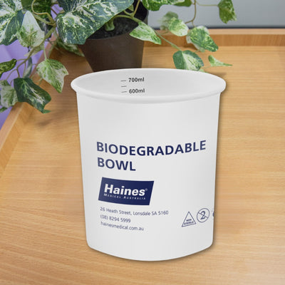 Haines® Greeny®Care Compostable Bowl with Optional Lid is a secure vessel with many uses, primarily designed to support nauseous patients and their carers through the hygienic containment and disposal of emesis. Like Compostable Denture and Sputum Cups, Compostable Vomit Bowls are made of paper with a compostable PLA lining. This means they have the ability to fully compost in 180 days.1